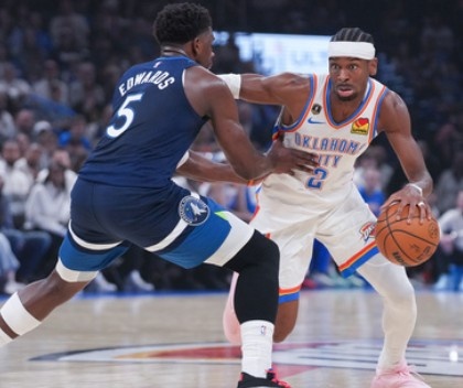 雷霆击破森林狼,亚历山大vs爱德华兹:22投20分对17投19分,俩都被防住了。